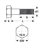 Sechskantschrauben Stahl sw DIN 960 MF 10.9