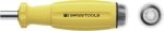 Drehmomentgriff PB Swiss Tools MecaTorque ESD 0.4...2.0 NmPB 8317.M ESD, stufenlose mechanische Einstellung am Griffende, ohne Beigabewerkzeug einstellbar. Anzeige mit analoger Skala, kann mit dem mitgelieferten Schlüssel rekalibriert werden. Bei Erreichen des eingestellten Drehmomentes löst der Drehmomentgriff hörbar aus. Das Lösemoment beträgt +100% des Einstellwertes; bereits angezogene Schrauben können problemlos wieder gelöst werden. Lieferung mit Rekalibrierwerkzeug, Werksprüfzertifikat, Genauigkeit ± 6% gemäss EN ISO 6789, Die ESD Griffe gewährleisten ein sicheres Ableiten elektrostatischer Ladungen sowie beim Arbeiten in ESD geschützten Bereichen. Magnetische Werkzeugaufnahme für Bits 1/4" C6.3 und E6.3.