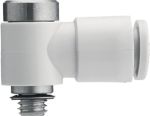 Einschraubwinkel SMC KQ2VS Aussengewinde metrisch, Messing vern. M5 / 4360° schwenkbar, mit InnensechskantÜber die Innensechskantöffnung im Körper kann die Steckverschraubung mit einem Inbusschlüssel befestigt werden.geeignet für Druckluft, WasserPrüfdruck 30 Barmax. Betriebsdruck 10 Barmin. Betriebsdruck -1 BarBetriebstemperatur Luft -5 bis +60 °CBetriebstemperatur Wasser 0 bis +40 °C (nicht gefroren)