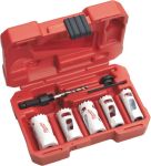 Lochsägen-Sets MILWAUKEE HOLE DOZER HOLE DOZER, 7-teilig, Ø 19...32 mmSpitzentechnologie für unvergleichliche Standzeit. Zahngeometrie - Variable 4 - 6 TPI Vario-Verzahnung mit positivem 10° Zahnwinkel: - schnellere und aggressivere Schnitte. - Geringere Wärmeentwicklung für eine längere Standzeit der Verzahnung. - Grössere Zahntiefen zur besseren Materialabfuhr. - Speziell geformte Zähne reduzieren das Verkanten in dünnen Materialien. - Geschränkte Zahnteilung reduziert die Reibung. - Aufgrund der aggressiven Verzahnung und guten Materialabfuhr weniger Anspressdruck nötig.