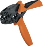 Crimpzange WEIDMÜLLER HTI 15für PVC-, PC- und Polyamid-isolierte Verbinder der Typen:- Kabelschuhe nach DIN 46237 und ähnlich- Stiftkabelschuhe nach DIN 46231 und ähnlich- Parallel- und Serienverbinder nach DIN 46341 und ähnlich- Steckverbinder nach DIN 46245 und ähnlichDoppelcrimp-Profil zur Vercrimpung von Kontakt und Isolation in einem Arbeitsgang, mit Anschlag, Zwangssperre mit Entriegelungsmöglichkeit; klare Querschnittszuordnung durch Farbmarkierung rot, blau, gelb.