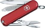 Taschenmesser VICTORINOX 58 mm / 7-teiligCLASSIC SD, Schweizer Fabrikat, 7-teilig, mit Messerklinge, Nagelfeile mit Schraubendreher 2.5 mm, Schere, Ring, Pinzette, Zahnstocher.