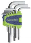 Sechskant-Winkelstiftschlüsselsatz NERIOX kurz, 9-teilig, 1.5...10 mmAus Chrom-Vanadium-Stahl, verchromt satiniert, für Innensechskantschrauben, in Kunststoffhalter.