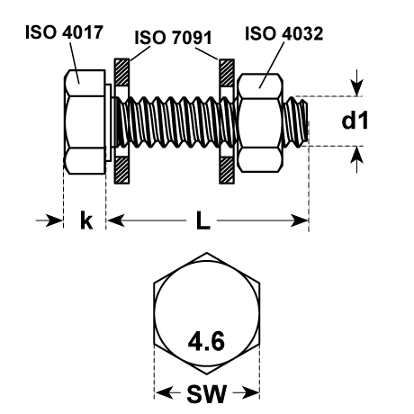 - Avec 100 Vis à six pans 4.6 zinguées au feu ISO 4017