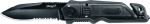 Messer WALTHER EMERGENCY RESCUE KNIFE 223 mm schwarzDas einklappbare Rettungsmesser hat eine Klinge aus 440er Stainless Steel, die Klinge ist schwarz beschichtet und weist im hinteren Drittel einen Wellenschliff auf, der ein zuverlässiges Durchtrennen von Seilen und Gurten ermöglicht, verriegelt wird das Messer über einen Liner-Lock Mechanismus, damit das Messer auch bei Dunkelheit erkannt und richtig gefasst werden kann, haben die gummierten Kunststoff-Griffschalen jeweils drei fluoreszierende Einlage, zwei der wichtigsten Ausstattungsmerkmale befinden sich im hinteren Drittel des Griffs, Gurtschneider und Glasbrecher sind unverzichtbare Hilfsmittel im Notfall, alternativ zum umsteckbaren Gürtelclip des Messers kann das Rettungsmesser auch im stabilen Nylon-Holster, das zum Lieferumfang gehört, geführt werden.