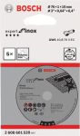 Trennscheibe BOSCH Ø 76 x 1 mm / Pack à 5 Stk.Passend zu Winkelschleifer mit 10 mm Aufnahme und 76 mm Scheiben Ø.Maximale Umfangsgeschwindigkeit: 80 m/s (abhängig von Drehzahl und Scheibendurchmesser)
