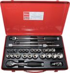 Sechskant-Steckschlüsselsatz KOKEN 1/2" / 28-teilig / 4241 M-01Koken 4241M-01, Chrom-Molybdän-Stahl, verchromt, in Blechkasten, enthaltend:22 Sechskant-Steckschlüsseleinsätze 10...32 mm1 Gleitgriff2 Verlängerungen 125, 250 mm1 Kardangelenk1 Winkelgriff mit Gelenk1 Umschaltknarre