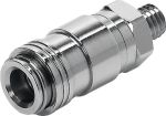 Kupplungsdose FESTO KD2 Aussengewinde metrisch M5Messing vernickeltSchnellverschluss-Kupplungeinseitig absperrendfür DruckluftNennweite: 2.7 mmNormalnenndurchfluss: 133 l/minBetriebsdruck: -0.95 - 10 bar