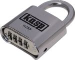 Zahlenschloss kasp 50 mmMassives Zahlenschloss, Bügel aus gehärtetem Stahl, Schliessmechanismus mit Doppelverriegelung, verstellbarer Zahlencode mit 4 Ziffern verdeckt am Schlossboden, Komponenten im Innern des Schlosses sind rostfrei.