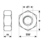 Écrous hexagonaux 0,5d acier clair DIN 439 4