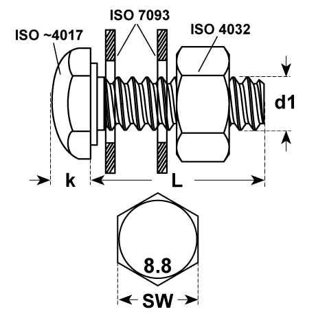 - Avec 200 rondelles zinguées au feu ISO 7093