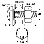 - Avec 100 écrou six pans en acier 8 zingué au feu ISO 4032