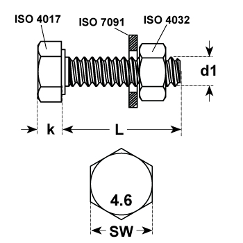 - Avec 100 Vis à six pans 4.6 zinguées au feu ISO 4017