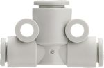 Raccordo a T a innesto rapido SMC KQ2T con riduzione 4 / 3,2 / 3,2Materiale:Plastica (PBT / PP)Raccordo a T a innesto rapido con riduzione per la ramificazione dei tubi flessibili su due lati ad angolo retto con riduzione simultanea del diametro dei tubi flessibili ramificatiColore biancoAdatto per aria compressa, acqua Pressione di prova 30 Barmax. Pressione di esercizio 10 bar Pressione di esercizio -1 barTemperatura di esercizio aria -5 a +60°Temperatura di esercizio acqua 0 a +40 °C (non congelata)