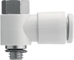 Angolo di avvitamento SMC KQ2VF Filetto maschio metrico, ottone nichelato M5 / 4360° girevoleCon la testa esagonale, il corpo può essere serrato con una chiave a bussola se lo spazio di installazione è limitatoAdatto per aria compressa, acquaCon guarnizione filettataPressione di prova 30 barmax. Pressione di esercizio 10 bar Pressione di esercizio -1 barTemperatura di esercizio aria -5 a +60°Temperatura di esercizio acqua 0 a +40 °C (non congelata)