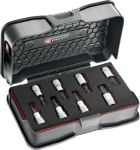 Set di bussole esagonali FACOM 3/8" JTM.J8MGRPPB, 8 pezzi, 3...11 mmFacomJTM.J8MGRPPB, 8 bussole esagonali con profilo OGV® GRIP. Lo speciale profilo esagonale protegge le viti con esagono incassato dall'arrotondamento anche con coppie elevate e allenta senza problemi le viti esagonali già danneggiate o arrotondate. In una custodia di plastica con inserto in schiuma.
