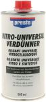 Diluente universale nitro presto 0,5 litrepresto Il diluente universale nitro è ideale per diluire le vernici a base di solvente nitro e le vernici combinate nitro, le vernici a base di resina sintetica e zapon che essiccano all'aria e al forno. Seguire le istruzioni del produttore della vernice. In caso di dubbio, effettuare un test preliminare. presto Nitro Diluente universale può essere utilizzato molto bene anche per la pulizia di pennelli e attrezzature per la verniciatura.Qualità e proprietà:Eccellente per diluire le vernici nitro e nitro combinate a base di solventi.Pulisce in modo rapido e affidabile pennelli, rulli e altre attrezzature per la verniciatura.Rimuove pitture e vernici a base di solventi