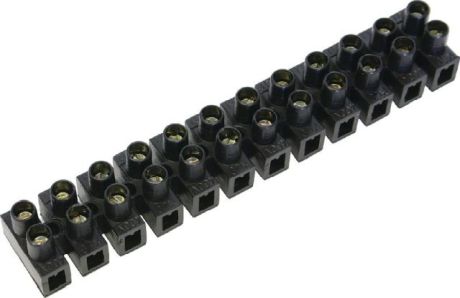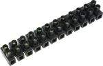 Morsetti a striscia 0,5 - 2,5 mm2 Morsetti a striscia in polietilene ( ritardante di fiamma ) nero, a 12 poli, con 2 viti di serraggio per polo, intervallo di temperatura da -20°C a + 70°C