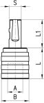 Mandrino di maschiatura TAPMATIC modello TA: gambo cilindrico con superficie di serraggio TA0-016 (M1 - M10)Per macchine utensili ad avanzamento controllato, in particolare per centri di lavoro e torni. Questi modelli sono utilizzati quando le condizioni di spazio critiche richiedono attacchi di maschiatura particolarmente corti.