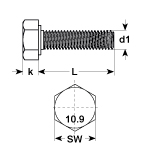 Viti a testa esagonale in acciaio ZB DIN 961 10.9